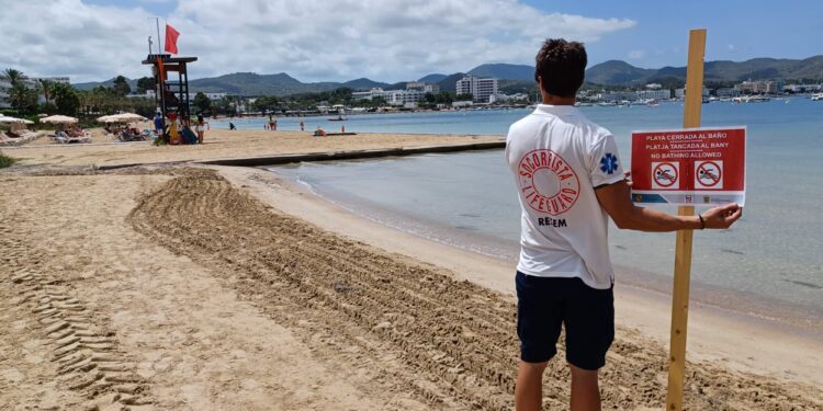 Cierre preventivo en la playa de s’Arenal por un vertido de aguas residuales en Sant Antoni