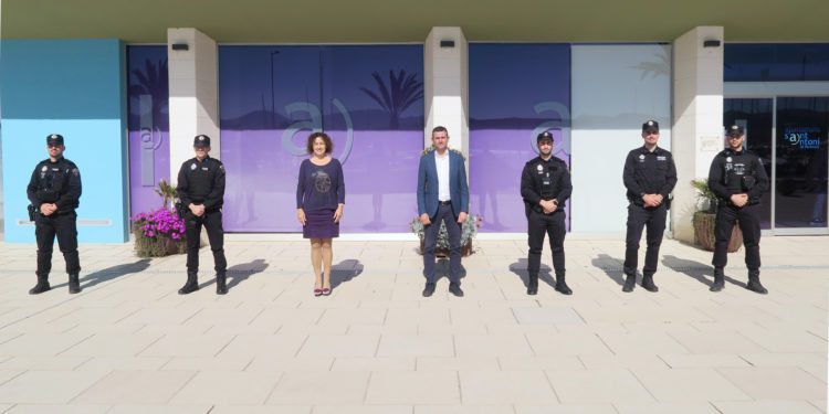 La sala de Plenos del Ayuntamiento de Sant Antoni de Portmany ha acogido el acto de toma de posesión de cinco agentes de la Policía Local que se incorporan como funcionarios de carrera tras superar el proceso formativo. El alcalde de Sant Antoni, Marcos Serra, ha presidido el acto, acompañado por la concejala de Gobernación, Neus Mateu, que han dado la bienvenida a los agentes que constituyen un importante refuerzo para el cuerpo policial.