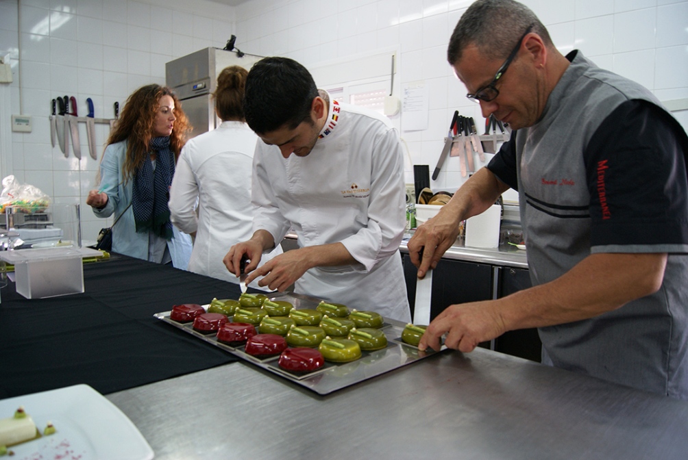Durante la demostración, que ha tenido lugar en el obrador de la Pastelería Mediterránea, también ha servido para presentar los últimos productos a más de 30 profesionales de los mejores restaurantes y hoteles de la isla de la mano del propietario de La Pastisseria Barcelona. En la misma también han asistido responsables de la prestigiosa marca de chocolate internacional Valrhona, que distribuye en exclusiva la Mediterránea.