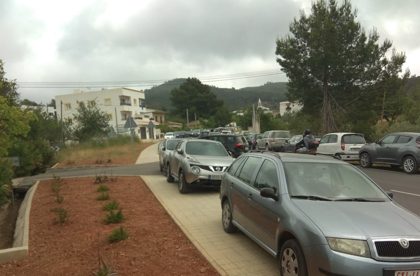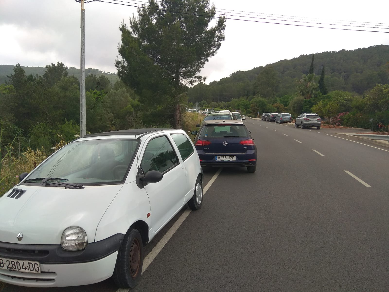 Coches mal estacionados en la carretera de Sant Joan.