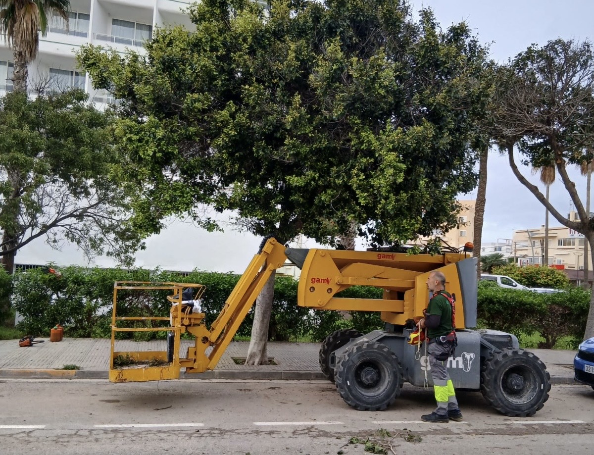 Además de en el centro de la ciudad, los equipos municipales están realizando trabajos de poda en la calle Fray Luís de León y, posteriormente, se actuará en las calles Algarb, de la Mediterrània y d’en Bossa, en el barrio de Platja d’en Bossa, donde está previsto podar más de 115 ficus.