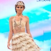 Vintage Ibiza con su colección ‘Aires de Ibiza’ apostó por el blanco en sus diferentes tonalidades con un papel protagonista para las transparencias y las plumas en las faldas largas y vaporosas. La joven diseñadora Janine Helbling, ex alumna de la Escuela d’Arts de Ibiza, también optó por una gama que va desde el blanco hasta los tostados. Unas creaciones de la colección ‘Isla de sueños románticos’ en las que los drapeados se mezclan con puntillas y y gasa de seda para hacer dibujos geométricos.
