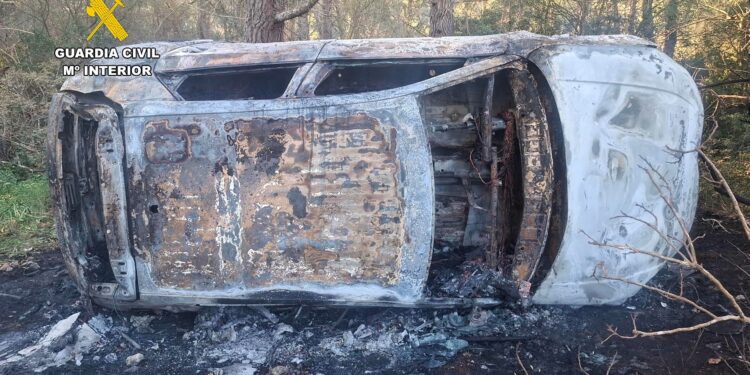 Cuando los agentes de la Benemérita llegaron al lugar, se encontraron con un vehículo accidentado, aparentemente por un exceso de velocidad que, además, se estaba incendiando.