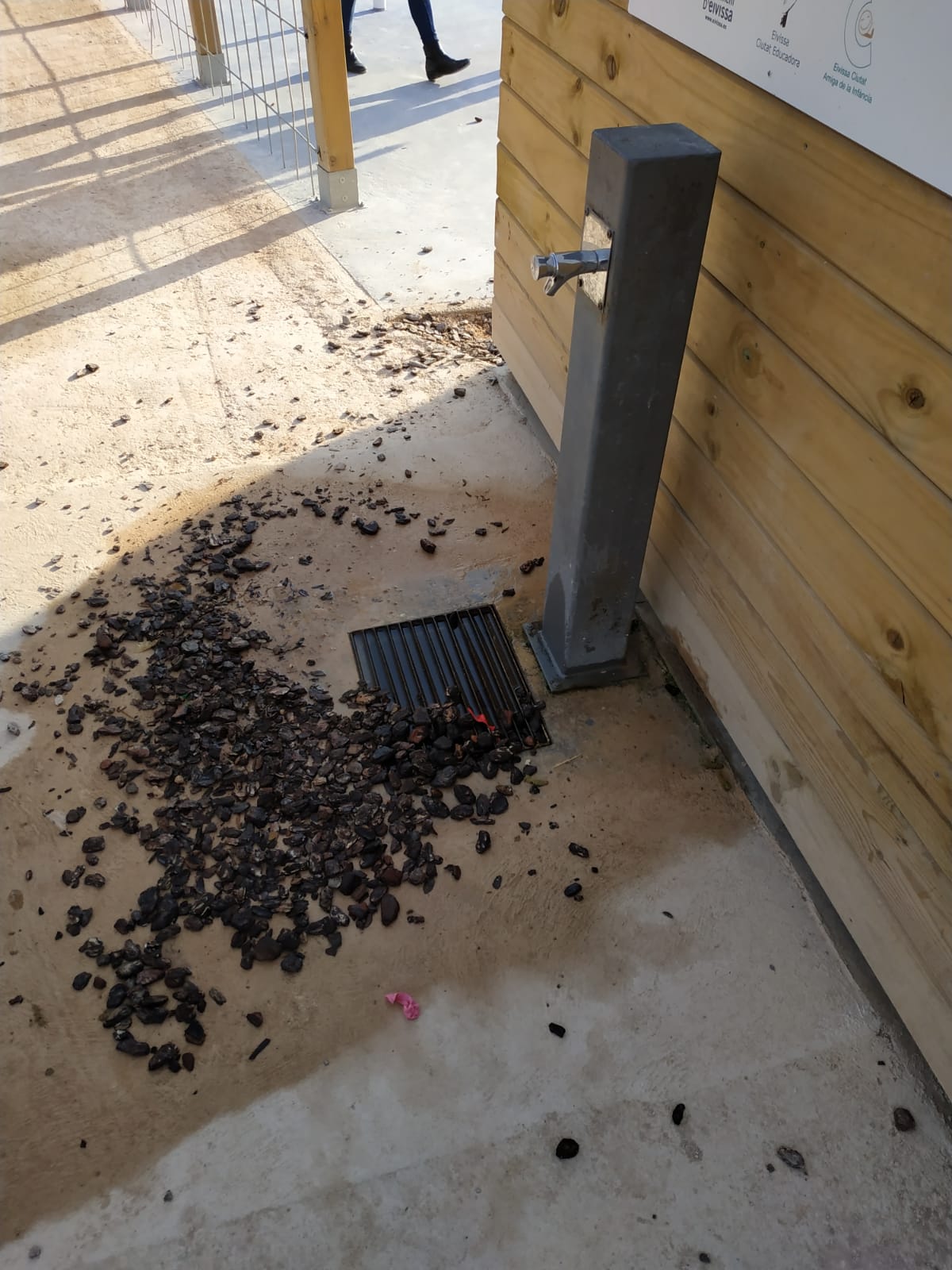 @Noudiari / Como se puede observar en las imágenes, el Parque Infantil de s’Illa, situado en el barrio de can Misses de Vila, se encuentra en un lamentable estado de mantenimiento. Hay una puerta que no cierra, sumideros tapados, la arena fuera de su sitio, tubos de riego al descubierto y cortezas decorativas desparramadas por distintos lugares, entre otros.