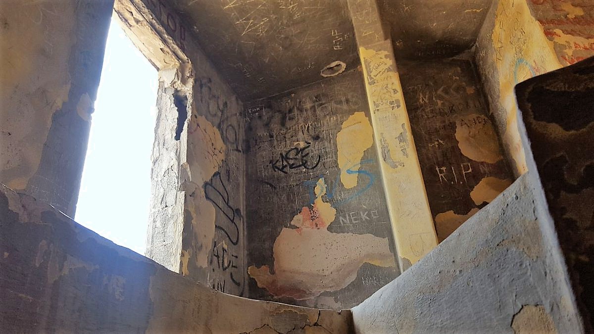 Con tanto grafiti parece más un muro de barrio cutre que una torre de defensa.