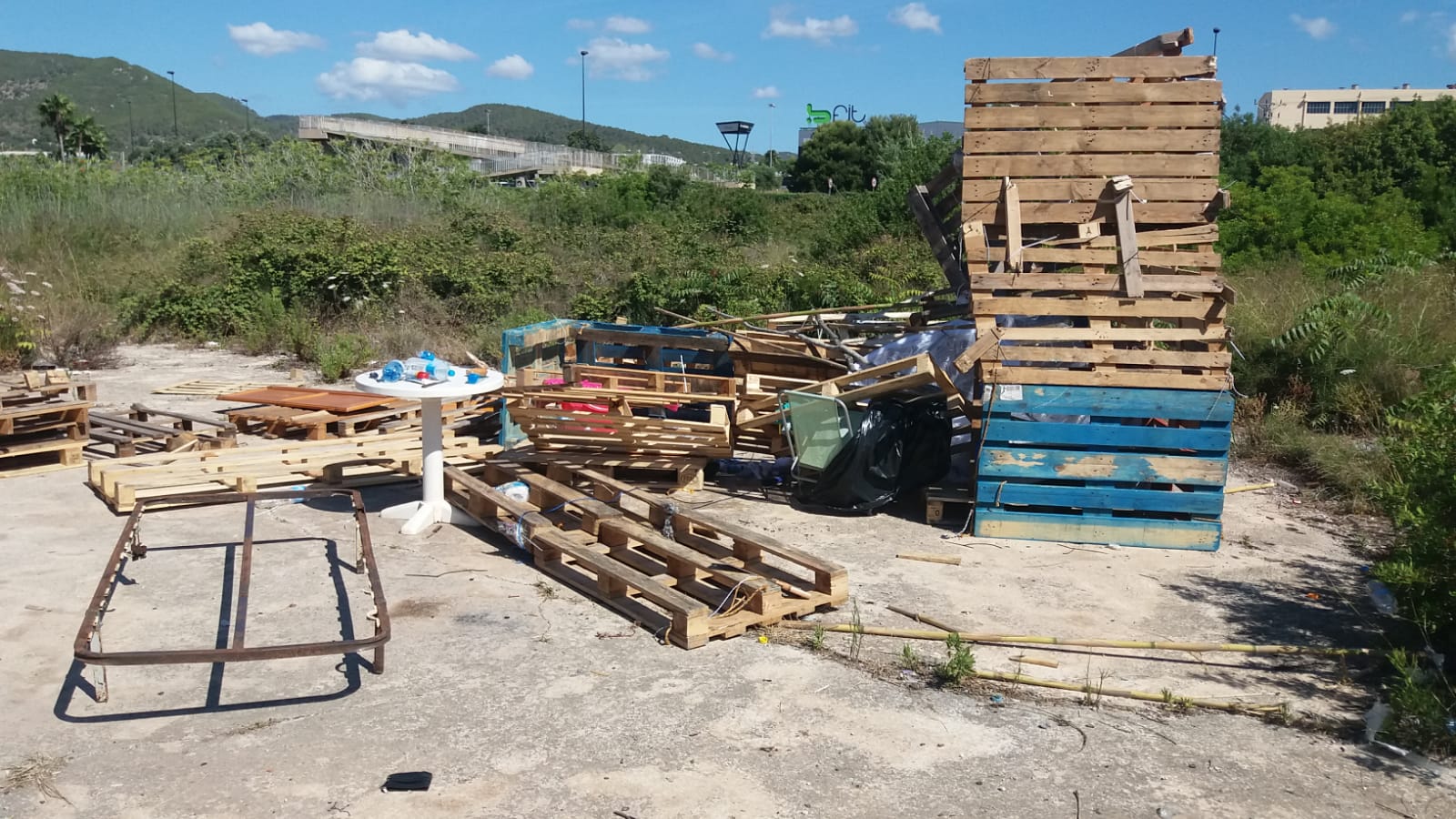 @Noudiari / La Policía Local de Ibiza, con la colaboración de la empresa de limpieza y recogida de residuos Valoriza, ha desmantelado esta mañana un asentamiento ilegal que se había detectado en la zona de Can Murtera, al final de la calle de Pere Francés, en el barrio de es Pratet.