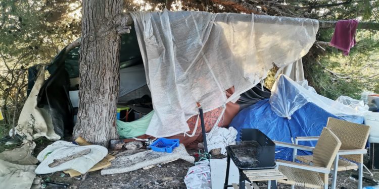 La Policía Local de Ibiza y el Servicio de limpieza han desmantelado un asentamiento ilegal en la calle de La Punta de Ibiza donde tienen constancia que se encendían fuegos «con el peligro que supone de incendio a esta zona», informa el Ayuntamiento de Ibiza.