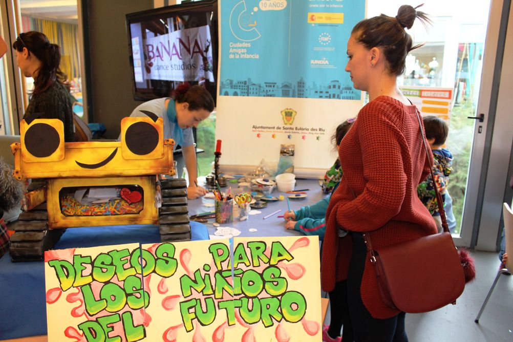 En la feria se puede contactar con empresas de animación de todo tipo, desde alquiler de equipamientos infantiles, preparación de dulces y postres personalizados o con tiendas con artículos para los niños, así como otros negocios como, por ejemplo, una escuela de tenis. El Punt Jove de Santa Eulària des Riu también se encuentra presente con dos espacios para realizar talleres y un buzón para depositar deseos para los niños del futuro, mientras que la Biblioteca Municipal tiene también un espacio con decenas de títulos de libros de literatura infantil.