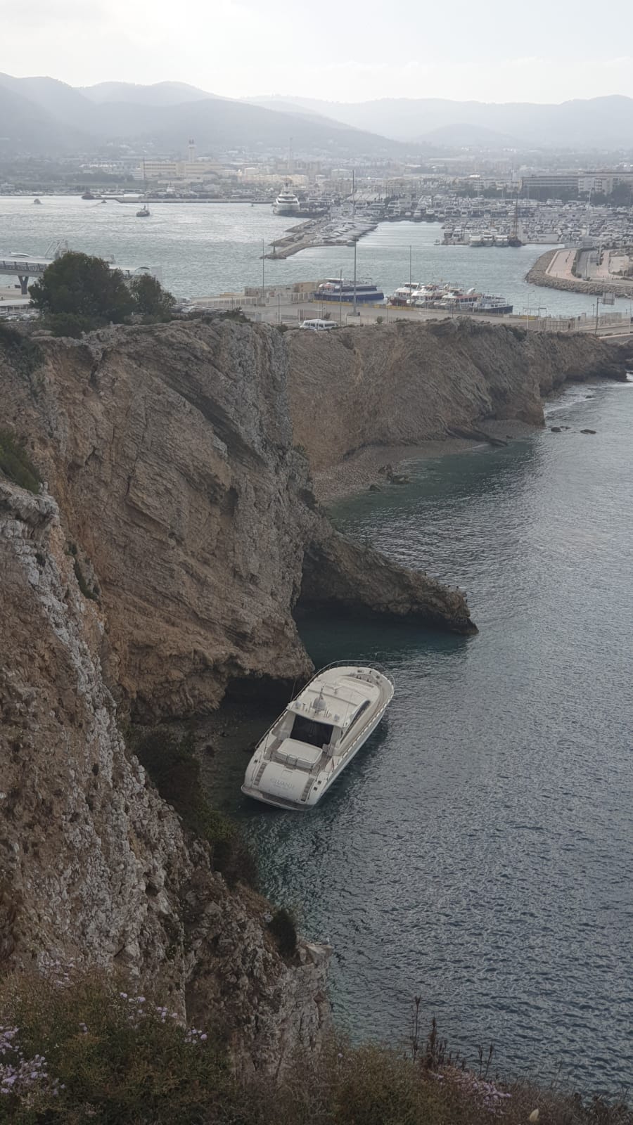 @Noudiari / Dos embarcaciones han colisionado contra las rocas esta pasada madrugada, una en el municipio de Sant Antoni y otro en Talamanca (Vila).