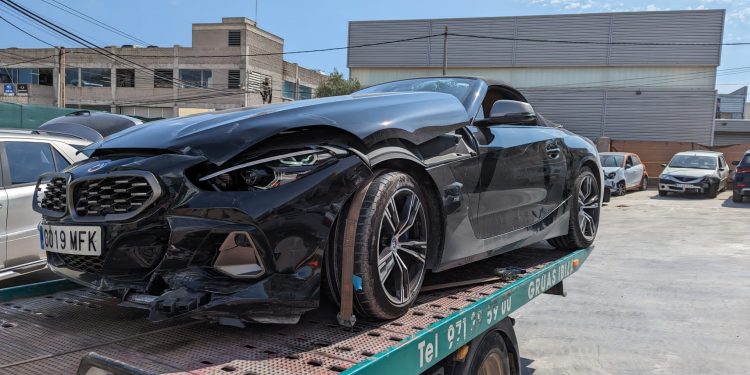 El accidente se ha producido sobre las 17 horas, cuando un vehículo de alquiler ha golpeado con fuerza a un BMW descapotable a la altura de la puerta del copiloto y lo ha desplazado encima de la acera.