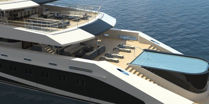 En la proa hay un helipuerto que también se utiliza como terraza. Asimismo, en en la parte delantera de la embarcación se encuentra una zona de café y descanso, con un pequeño jacuzzi en el centro. La cubierta principal, a popa, cuenta con una gran piscina de 7×5 metros.