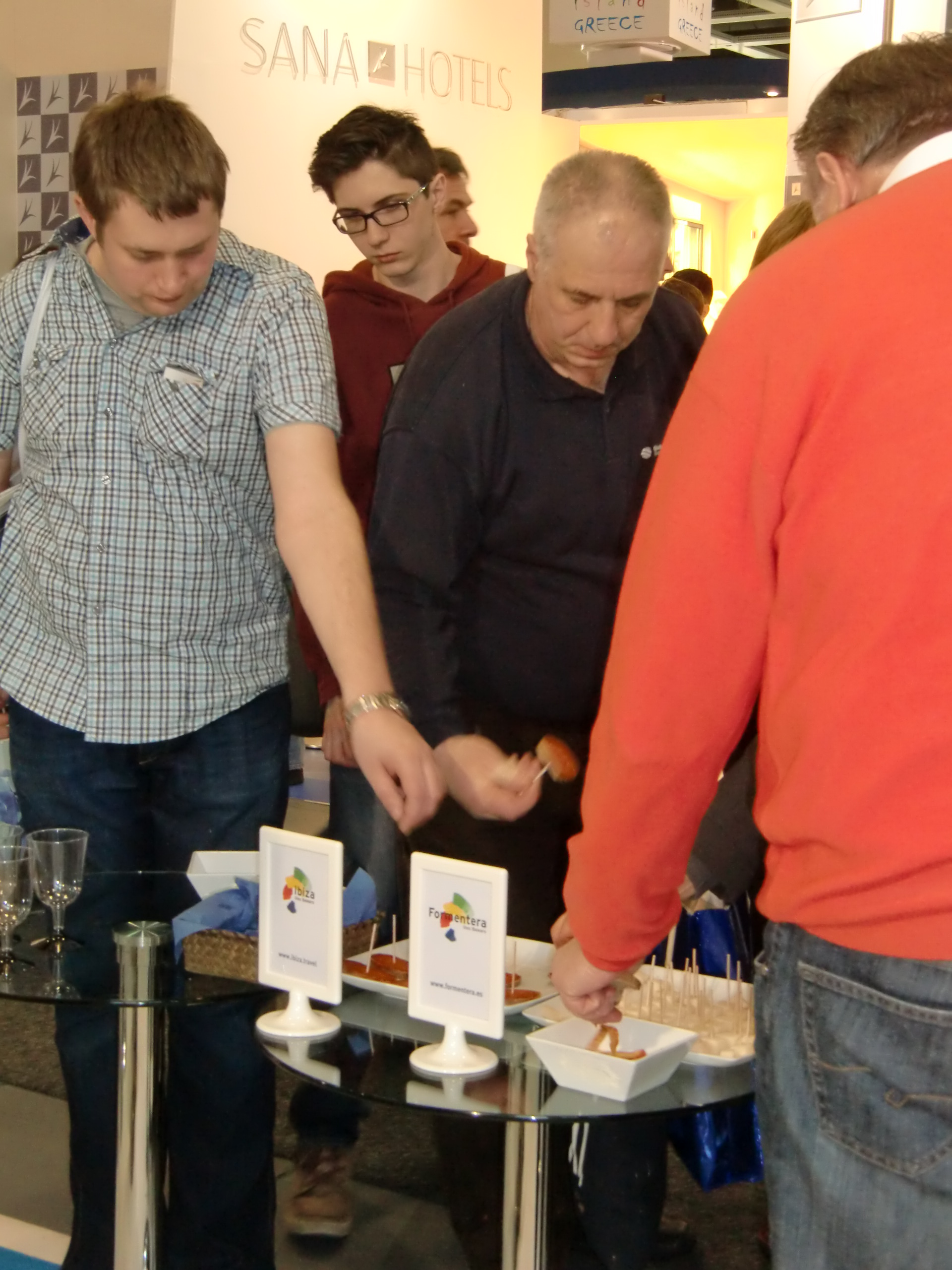 El stand de Eivissa de la feria turística ITB, en Berlín, ha dado por finalizada su labor de promoción con una degustación de queso, sobrassada y orelletes, todo ello regado con vinos de Can Maymó, Sa Cova y Can Rich, que ha hecho las delicias de los asistentes al evento.