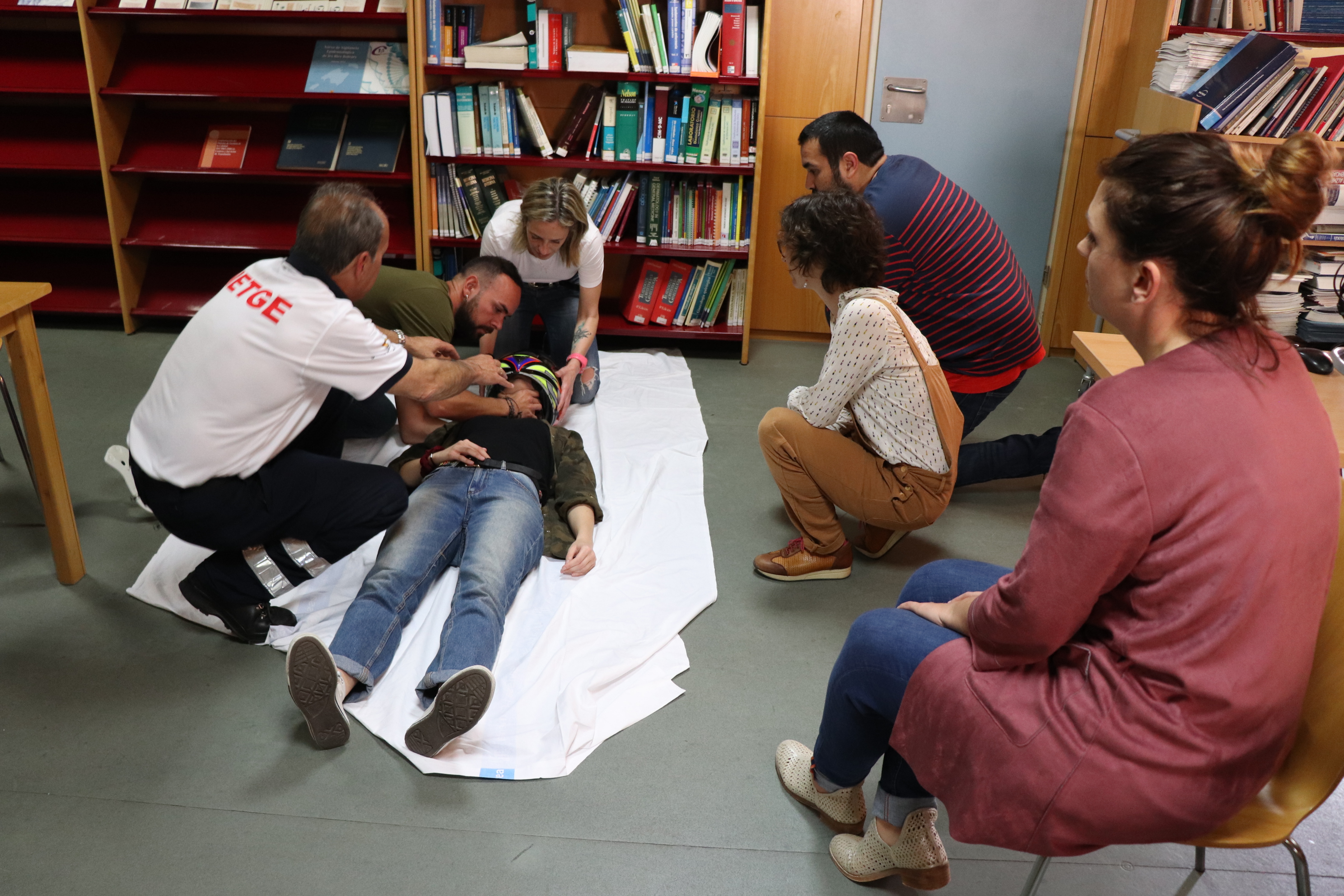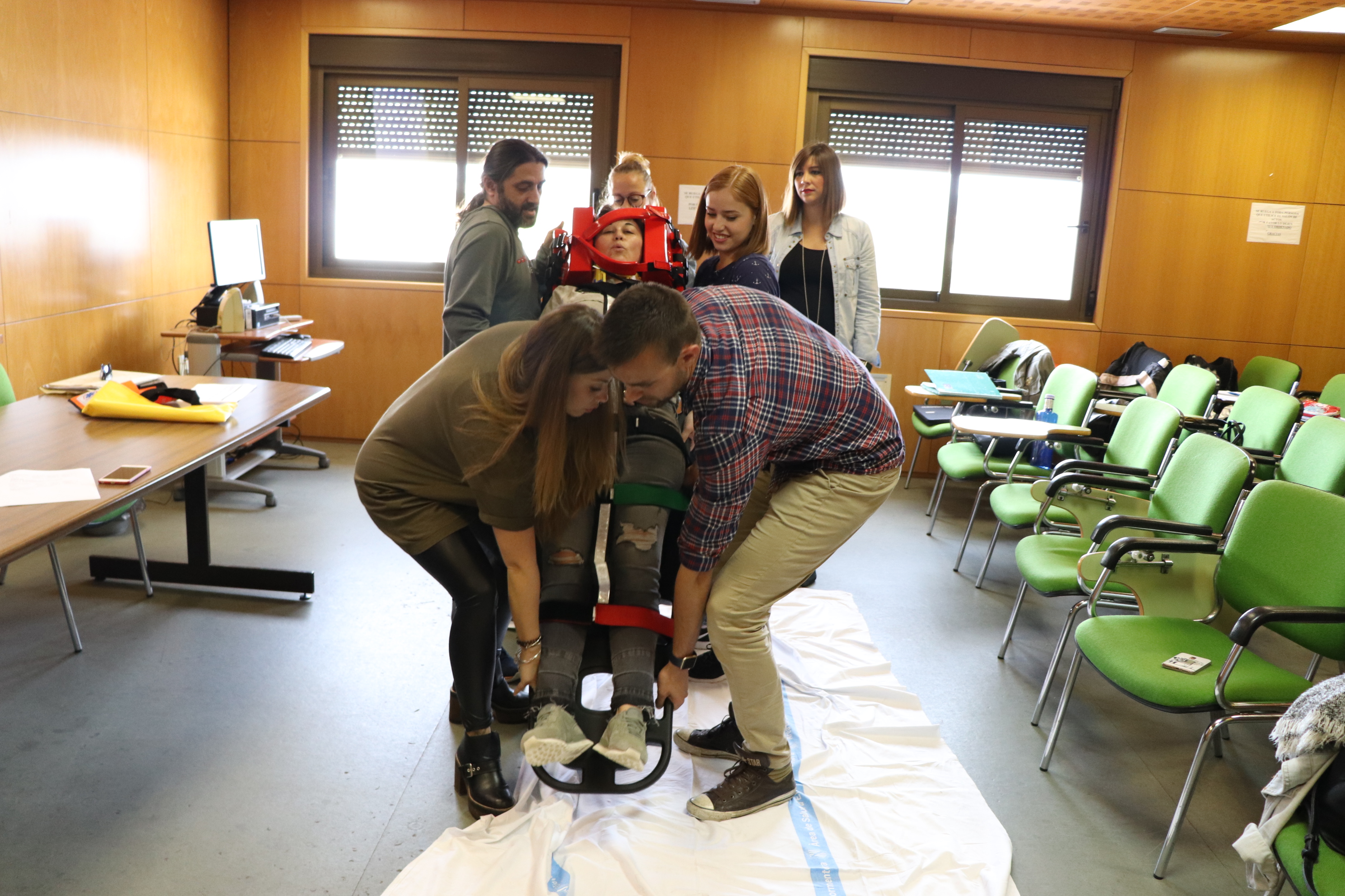 Hoy los alumnos han asistido a distintos talleres en los que han practicado la extracción de un paciente de un vehículo, la inmovilización espinomedular, la extracción de casco en accidente de moto, y ha finalizado con atención al traumatismo pediátrico.
