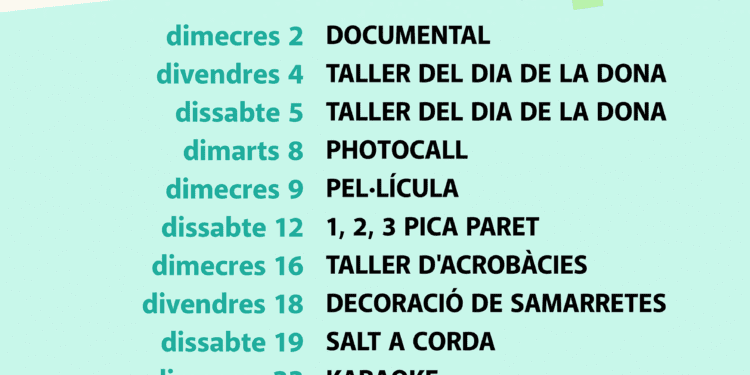 La consellera de Joventut, Vanessa Parellada, ha destacat la feina de conscienciació que es fa des del Casal perquè els usuaris ja gaudeixin d’aquestes celebracions i treballin el pensament crític. Dins de les activitats relacionades amb el Dia de la Dona hi ha dos propostes de cine i documental: «Juana de Arco» i «Las que faltaban». “Amb aquestes projeccions es visibilitza el paper de la dona i es promou la igualtat de drets”, segons ha destacat Parellada.