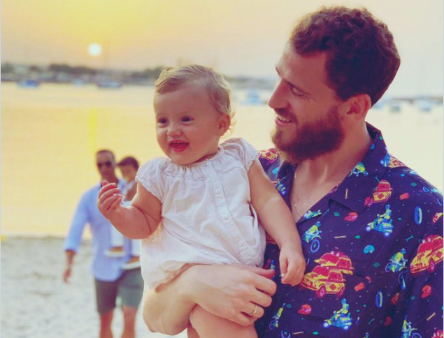 En la imagen que el jugador ha subido a las redes sociales se le ve con su segunda hija en brazos con la puesta de sol en una playa insular de fondo.