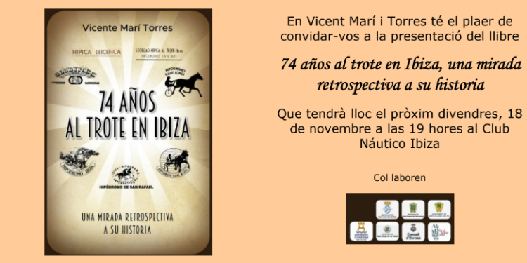 El Club Náutico Ibiza acoge este viernes 18 de noviembre a las 19:00 horas la presentación del libro ’74 años al trote en Ibiza, una mirada retrospectiva a su historia’, de Vicent Marí. Este encuentro abierto al público, que estará presentado el periodista de Radio Ibiza Cadena Ser, Juan Tur, contará con la presencia del autor de la obra, así como de Vicent Escandell, empresario y ‘menador de cavalls de trot’.