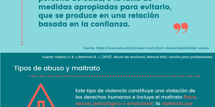 Este maltrato no es solo físico, que puede ser el más evidente, sino que también existe el abuso psicológico o emocional, el abuso sexual, la violencia por razones económicas y materiales o la negligencia y falta de cuidados adecuados. Otra forma de maltrato es la estigmatización o discriminación por razón de edad.