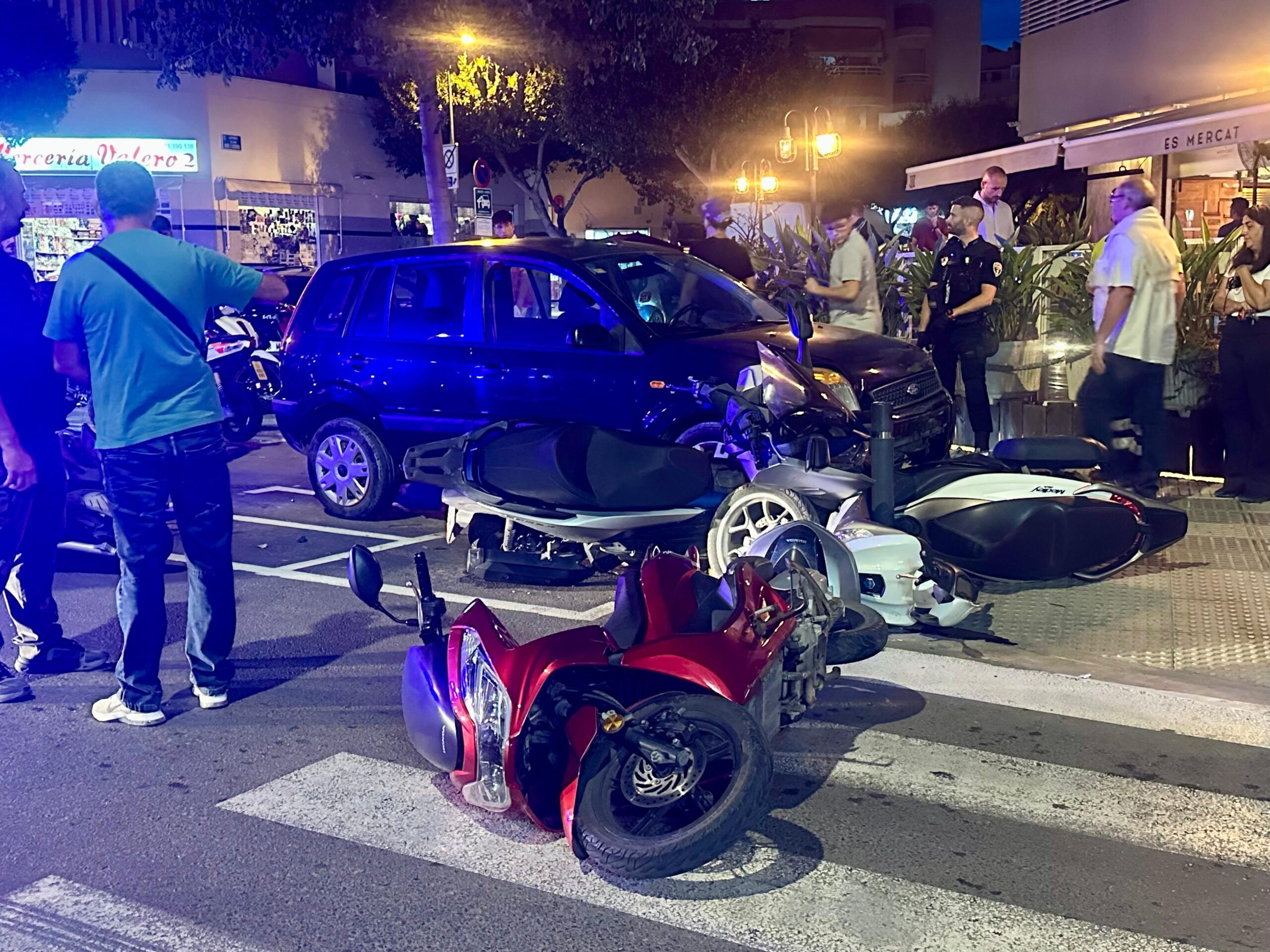 ACTUALIZACIÓN: IBA DROGADO No ha habido heridos de milagro. Un vehículo ha perdido el control esta tarde en pleno centro del municipio de Ibiza y ha acabado impactando contra varias motocicletas que estaban aparcadas en la intersección entre las calles Abad y la Sierra y Sant Cristòfol.