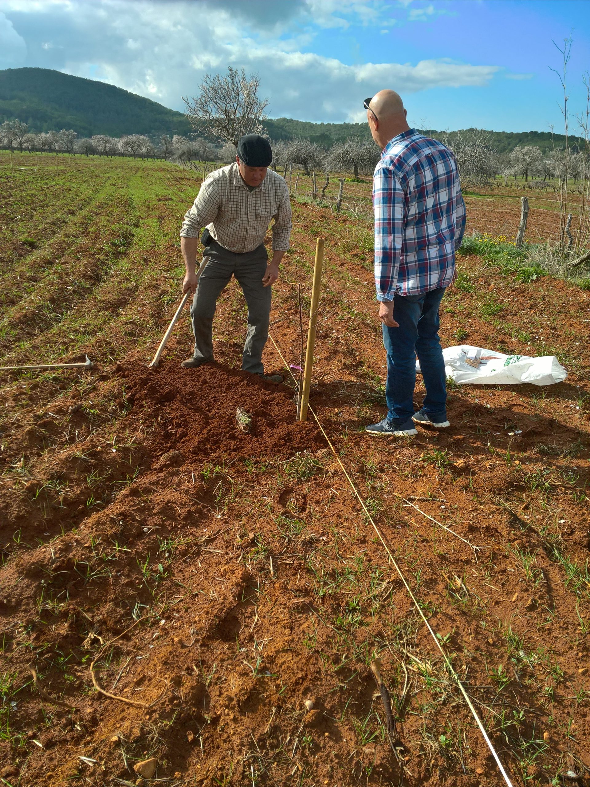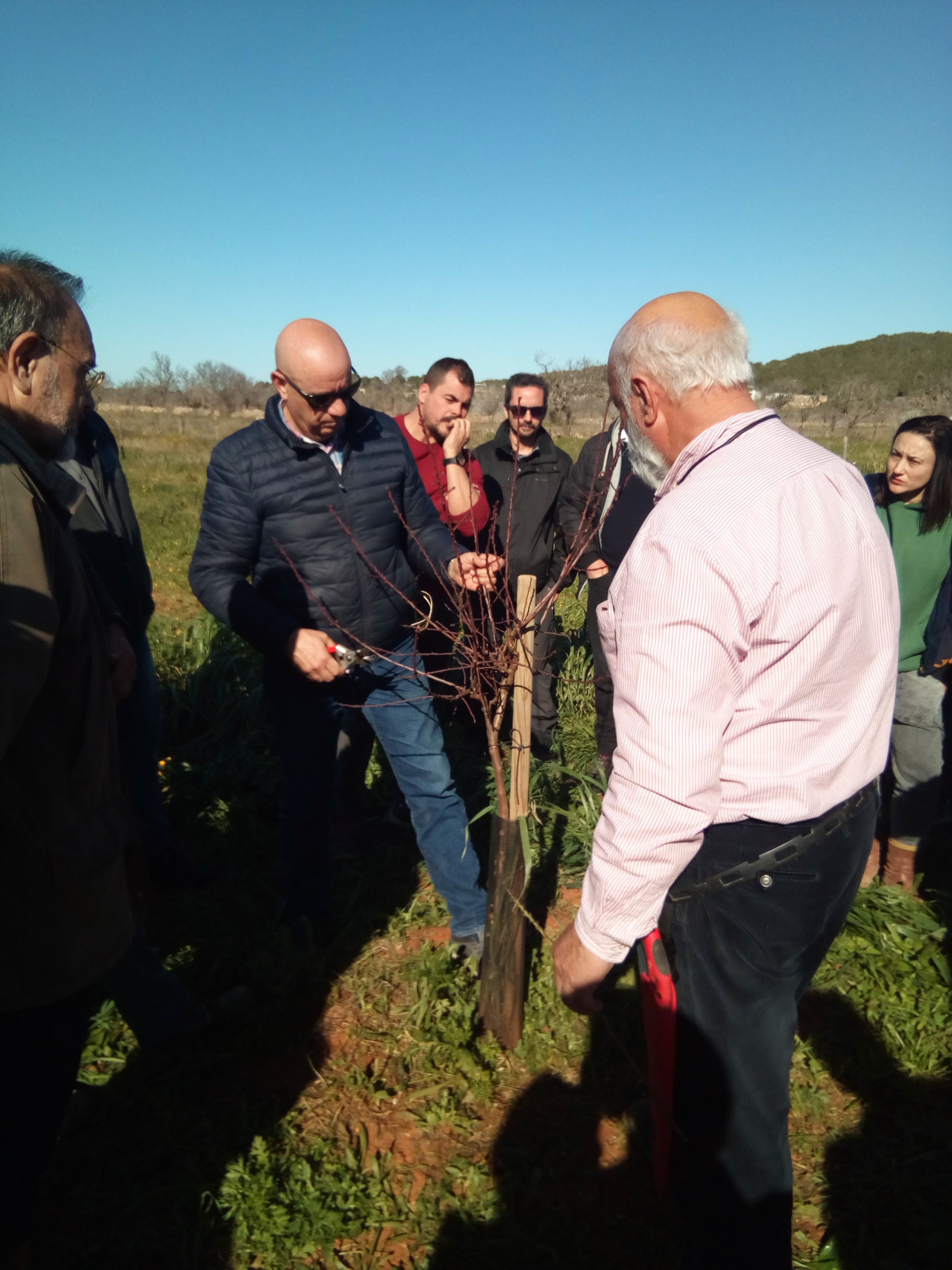 El mateix any, per tal d’empeltar els plançons amb les varietats eivissenques es va organitzar un curs d’empelt el juny de 2018 per part de Bernat Canyelles, tècnic de l’IRFAP del Govern Balear, amb un tipus d’empelt d’estiu. L’any 2019 un segon taller impartit també per Bernat Canyelles durant el mes de gener es va centrar en un segon tipus d’empelt d’hivern i la formació i esporga dels arbres durant el primer any. I l’any 2020 s’ha seguit l’evolució del conreu amb unes noves jornades tècniques destinades a mostrar l’esporga de formació del segon any i reforçar els coneixements d’empelt amb varietats autòctones.