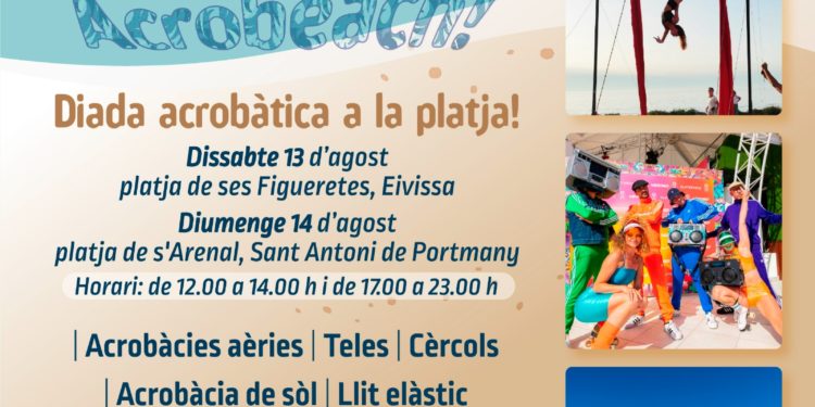 Amb motiu de la celebració, aquest pròxim divendres 12 d’agost, del Dia Internacional de la Joventut, el departament d’Esports i Joventut del Consell Insular d’Eivissa ha organitzat per al cap de setmana una Diada Acrobàtica a la platja, Acrobeach, dirigida als joves on hi haurà activitats com acrobàcies aèries, llits elàstics, breakdance, popping, teles, cèrcols, animacions i exhibicions.