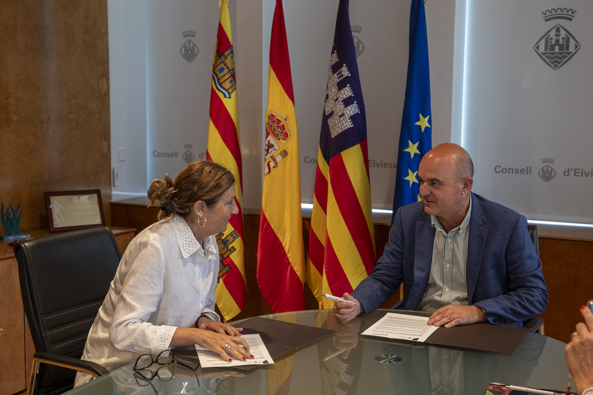 El presidente del Consell de Ibiza, Vicent Marí, ha firmado hoy un convenio con la presidenta de la Unión de Cooperativas Agrarias de Baleares (Ucabal), Jerònima Bonafé, por un importe de 120.000 euros que se destinarán a la creación y mantenimiento de un servicio de asesoramiento a las cooperativas y explotaciones agrarias de Ibiza «para mejorar la gestión sostenible y el rendimiento general» de las mismas.