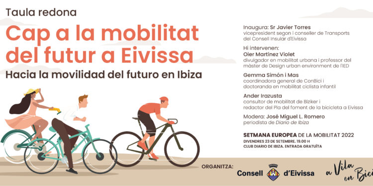 El Departament de Transports del Consell Insular d’Eivissa i el col•lectiu A Vila en bici han organitzat una taula redona on tres experts debatran sobre el futur de la mobilitat a Eivissa. L’acte es celebrarà el divendres 23 de setembre, a les 19 hores, al Club Diario de Ibiza. L’entrada és gratuïta.
