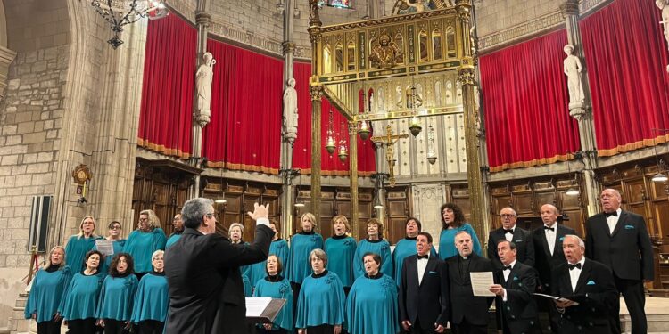 Bajo las bóvedas del templo catalán, la coral josepina desplegó un repertorio que fusionó la vanguardia con la tradición de su municipio, interpretando piezas contemporáneas junto a temas religiosos tradicionales de Sant Josep de sa Talaia. El momento más solemne llegó con la interpretación de la misa gregoriana “Orbis factor”, una partitura con más de ochocientos años de antigüedad.