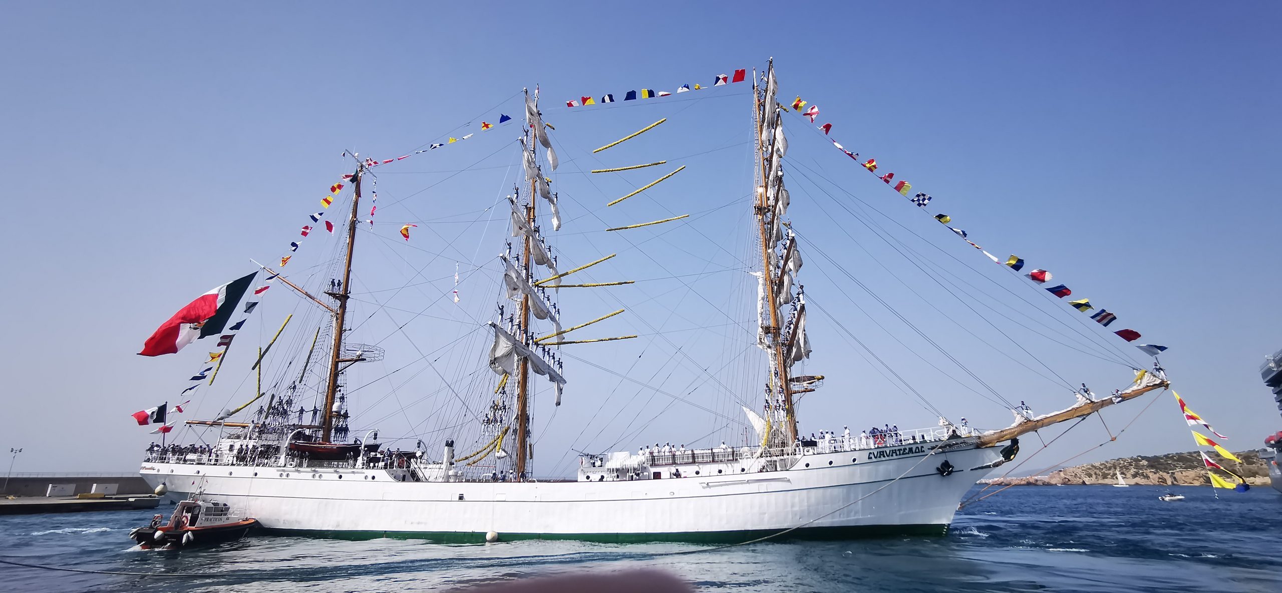El buque inició su travesía en el puerto de Acapulco (México) el pasado 1 de abril. Después de pasar por Cuba y Estados Unidos, llegó a aguas españolas, donde además de en el puerto de Ibiza se detiene en Gijón, A Coruña, Cádiz y Santa Cruz de Tenerife. En total, visitará 18 puertos de 13 países diferentes. A bordo de la embarcación viajan 112 cadetes de cuarto año de la Escuela Naval Militar mexicana.