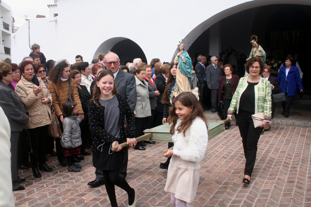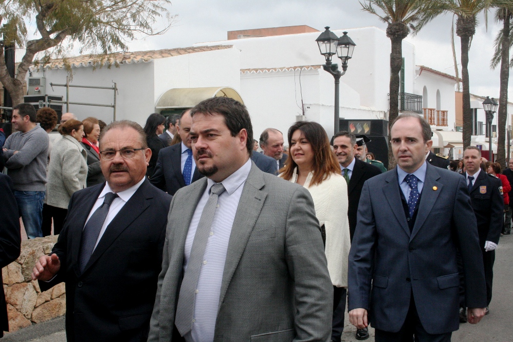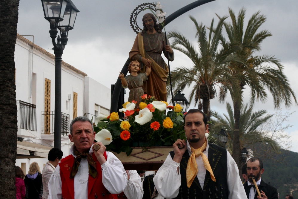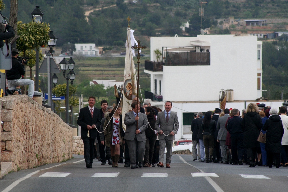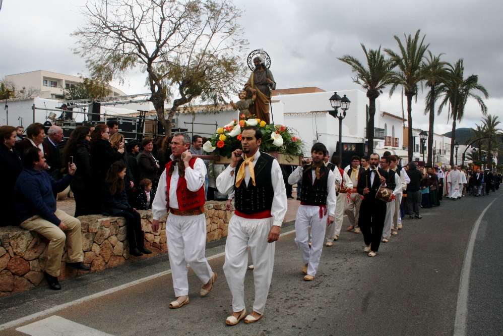 Tras el acto religioso, fue el momento de la procesión, que apenas recorre un centenar de metros en la carretera principal del pueblo. La comitiva, que cerraba la imagen de Sant Josep con el niño Jesús, estaba presidido por el obispo y varios sacerdotes, acompañados por el alcalde Josep Marí Ribas y el presidente del Consell d’Eivissa, Vicent Torres, que portaba el bastón de mando, además de otras autoridades de la isla.