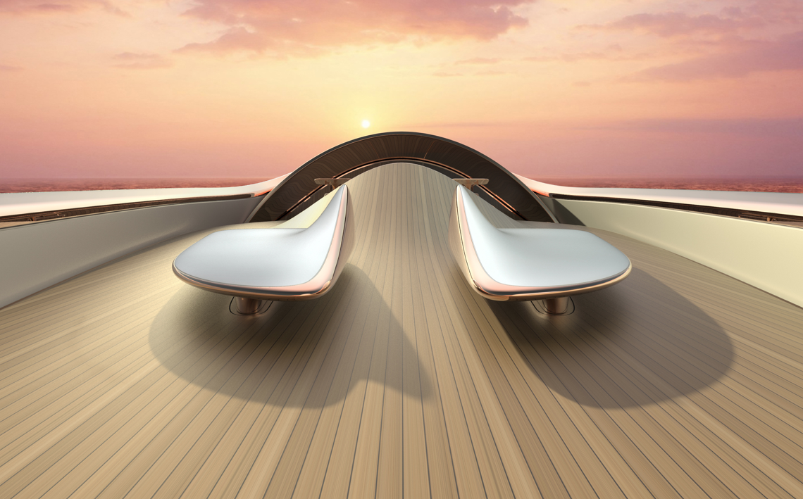 Según explica el diseñador en su web, la embarcación tendrá en su interior una colección de ultra lujo y otras piezas aún por diseñar, y tomará «lo mejor» de los veleros y de las lanchas rápidas, «la elegancia y la eficiencia».