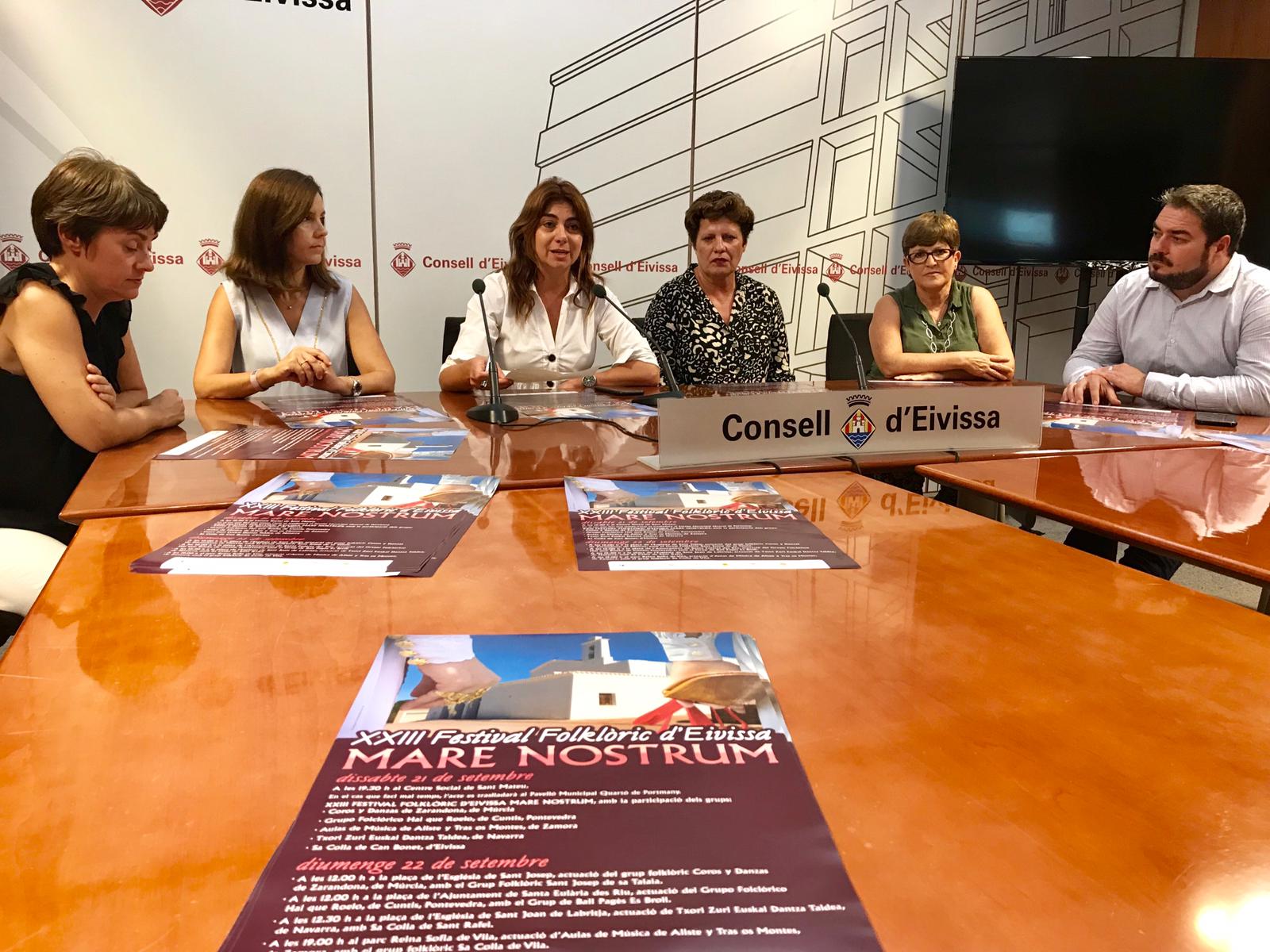 Junt amb la consellera, han presentat els actes del XXIII Festival Mare Nostrum els regidors de festes dels cinc ajuntaments de l’illa i la tresorera de la Federació de Colles de Ball i Cultura Popular d’Eivissa, Josefa Torres.