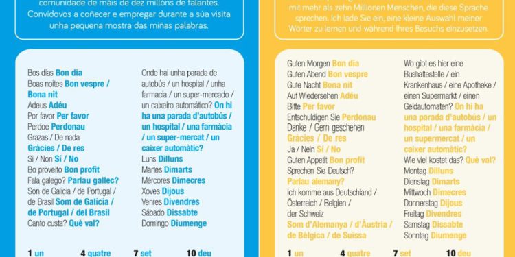 Las tarjetas están disponibles en nueve lenguas: alemán, inglés, vasco, castellano, francés, gallego, italiano, neerlandés y sueco. En la cara principal de la tarjeta aparece un breve texto de presentación de la lengua y al anverso hay la correspondencia al catalán de un pequeño vocabulario de la lengua de los visitantes, para que conozcan algunas palabras y expresiones básicas cómo “buenos días”, “gracias” o “buen provecho”.