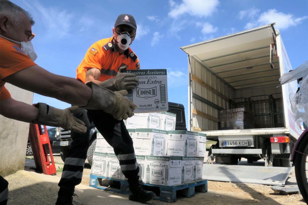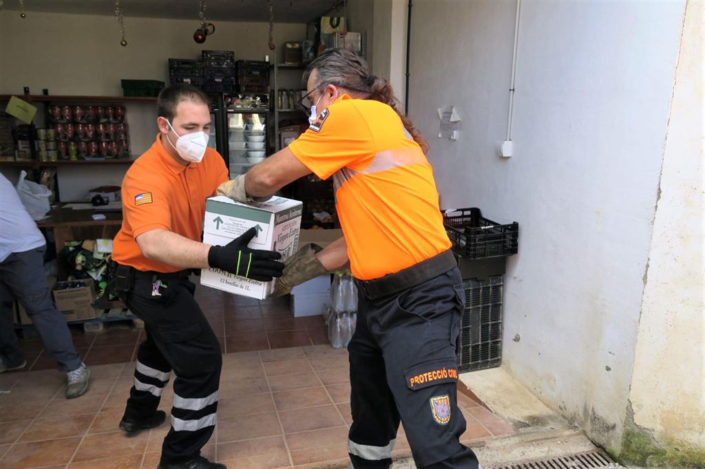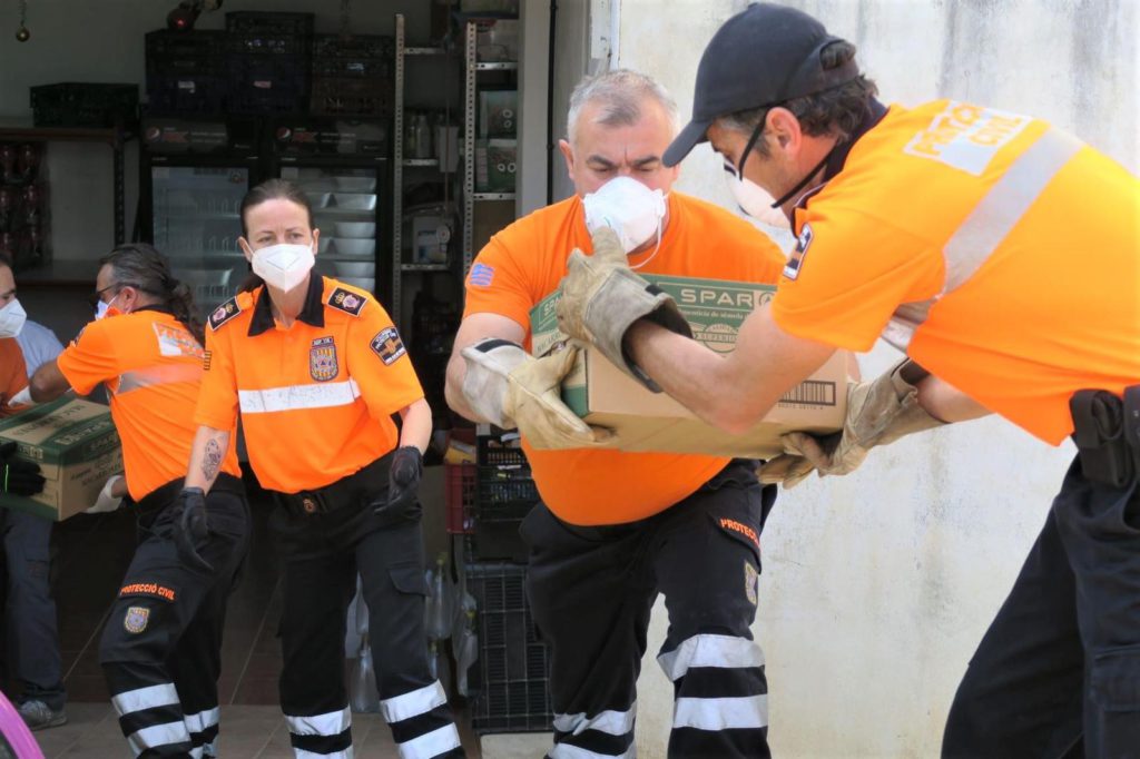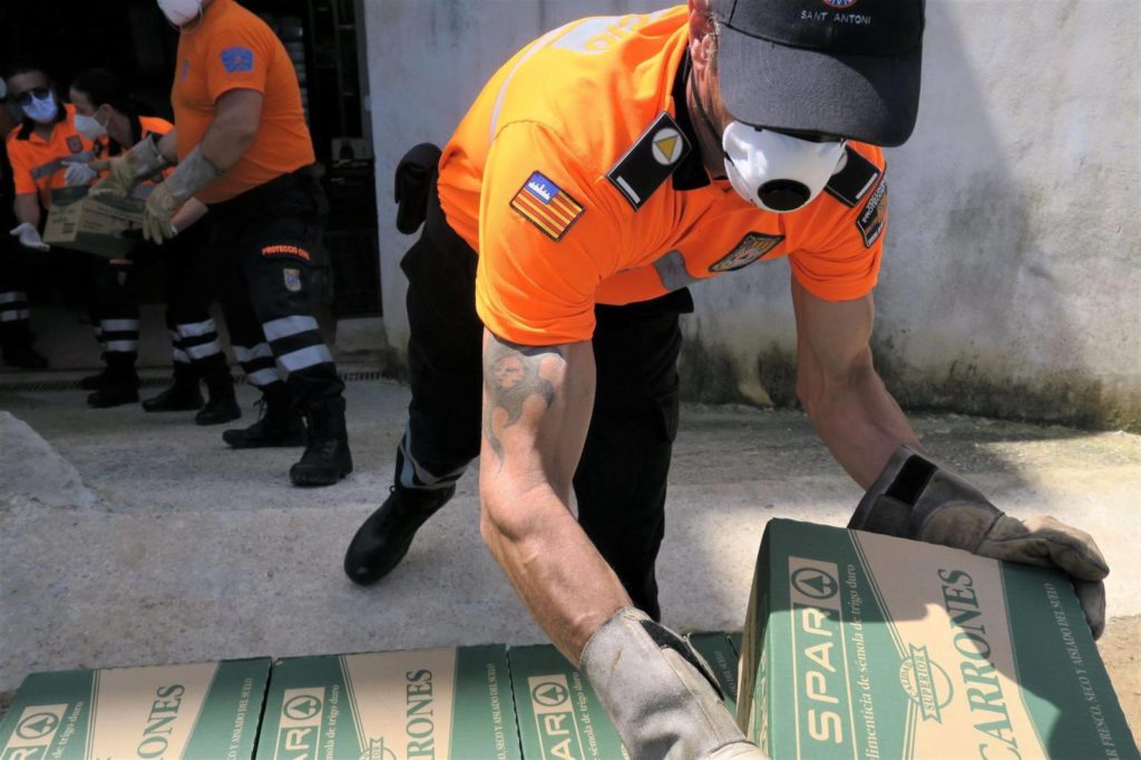 • La Agrupación de Protección Civil de Sant Antoni descarga comida para Cáritas de Sant Antoni, hoy.