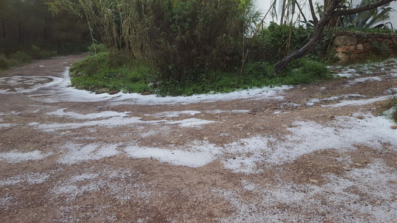 Primero fue en Sant Mateu, una de la zonas en las que el lunes se pudieron tomar las primeras imágenes de la granizada, y este martes por la mañana le siguió Sant Llorenç, en cuyas montañas se pudieron registrar paisajes blancos en medio del bosque.