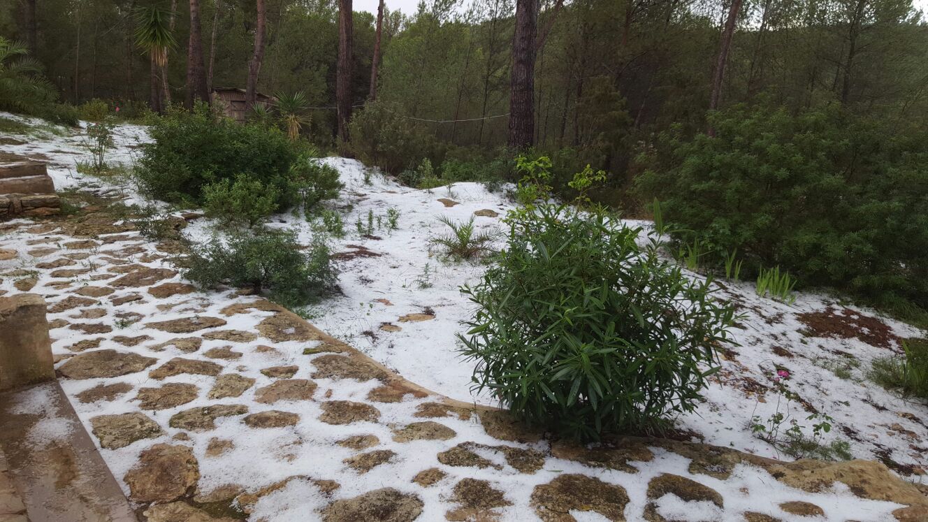 Primero fue en Sant Mateu, una de la zonas en las que el lunes se pudieron tomar las primeras imágenes de la granizada, y este martes por la mañana le siguió Sant Llorenç, en cuyas montañas se pudieron registrar paisajes blancos en medio del bosque.