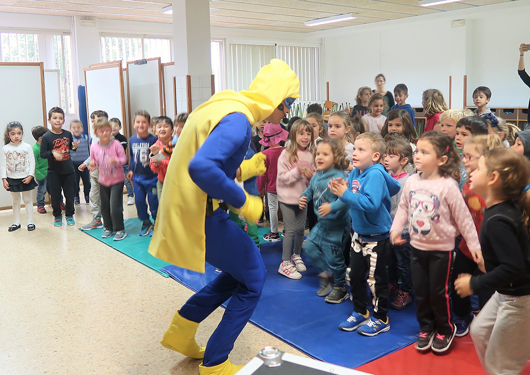 El `Guerrero de la Limpieza´ ha entregado a cada uno de los alumnos un imán de nevera con su imagen y los contenedores en los que deben depositar cada residuo con el fin de que “transmitan su mensaje en sus casas y sean parte de su patrulla de la limpieza”. Los escolares han bailado con el actor que encarga a este personaje, han hecho trucos de magia a su lado y han mostrado su compromiso con el medio ambiente.