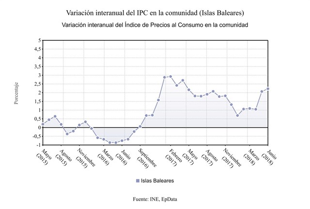 El IPC sube en junio en Baleares una décima y se sitúa en el 2,2 %