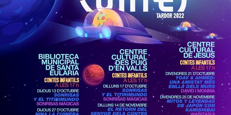 La nueva temporada de ‘Contes de Tardor’, que organiza la Biblioteca Municipal de Santa Eulària des Riu, dará inicio este jueves en su sede de la calle Joan Tur Tur para después circular por todas las Parròquies del municipio hasta su finalización, prevista el 25 de noviembre en el Centre Cultural de Jesús. En total, una docena de sesiones para niños, más una específica para adultos, que permiten viajar a otros mundos gracias a la imaginación. Como siempre, todas las sesiones son gratuitas y darán comienzo a las 17:00 horas, excepto la destinada a mayores, que se iniciará a las 20:00 horas.