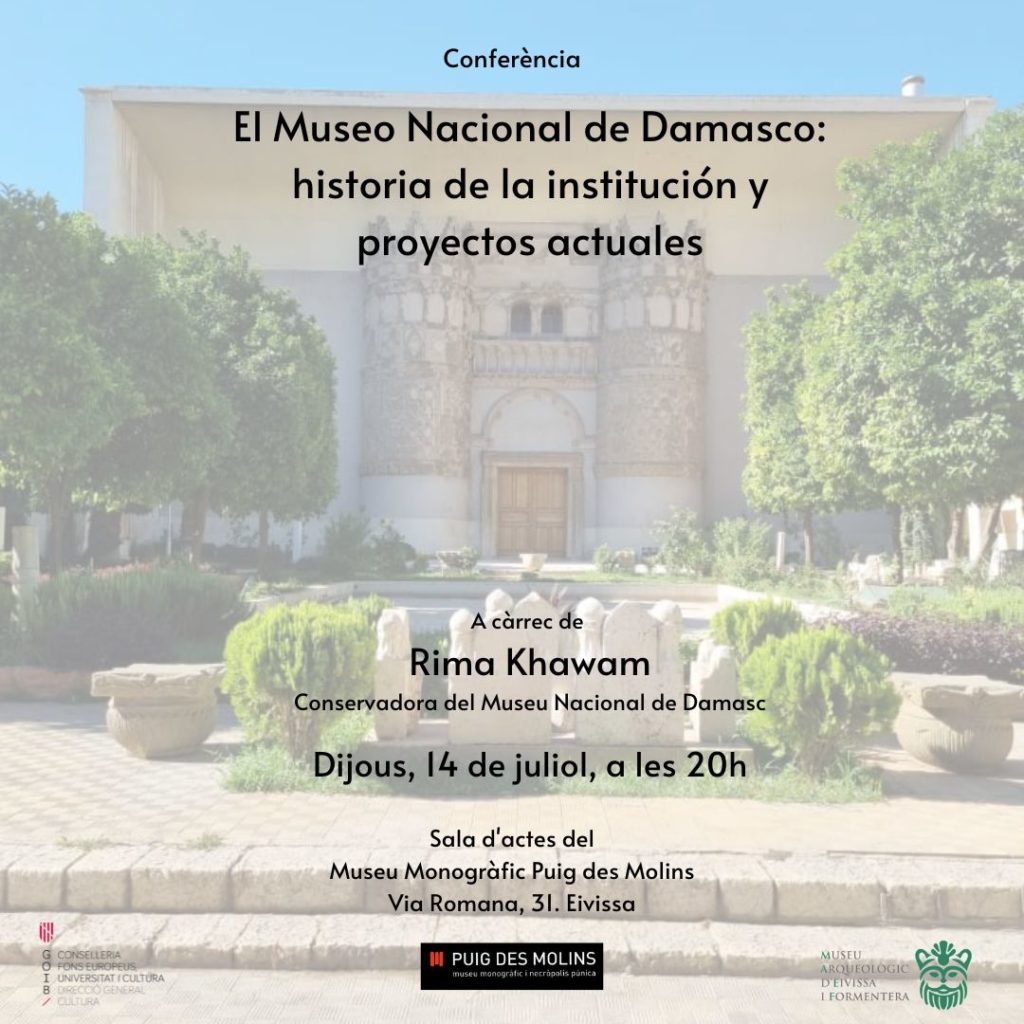 El Museu Arqueològic d’Eivissa i Formentera (MAEF) presenta el pròxim dijous 14 de juliol la conferència «El Museo Nacional de Damasco: historia de la institución y proyectos actuales» a càrrec de la Dra. Rima Khawam, conservadora del Museu Nacional de Damasc. Ho ha difós avui el MAEF a través d’una nota de premsa.