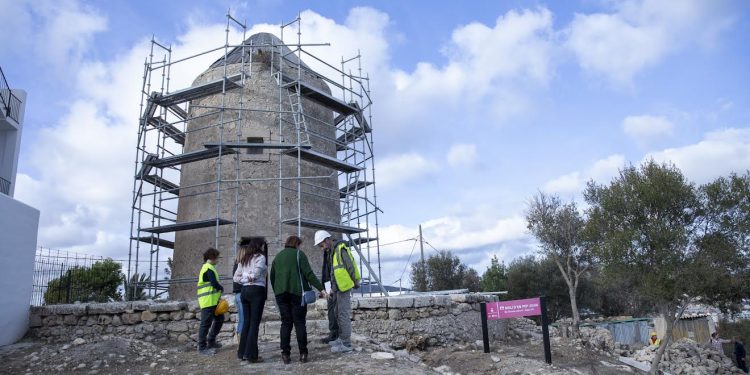 La consellera del Departament de Cultura, Patrimoni i Educació del Consell Insular d’Eivissa, Sara Ramon, ha visitat avui els treballs de d’intervenció arquitectònica que s’estan executant al Molí den Pep d’en Joan a Eivissa, treballs previs i necessaris per redactar i licitar el projecte de restauració d’aquest Bé d’Interès Cultural i la seua posterior dinamització com a centre d’interpretació de l’ofici de fariner.