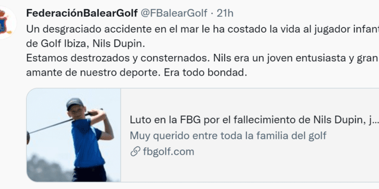 «Estamos destrozados y consternados. Nils era un joven entusiasta y gran amante de nuestro deporte. Era todo bondad. Jugaba en la categoría infantil en Golf Ibiza, de donde su padre es profesional», explican en un comunicado desde la Federación Balear de Golf.
