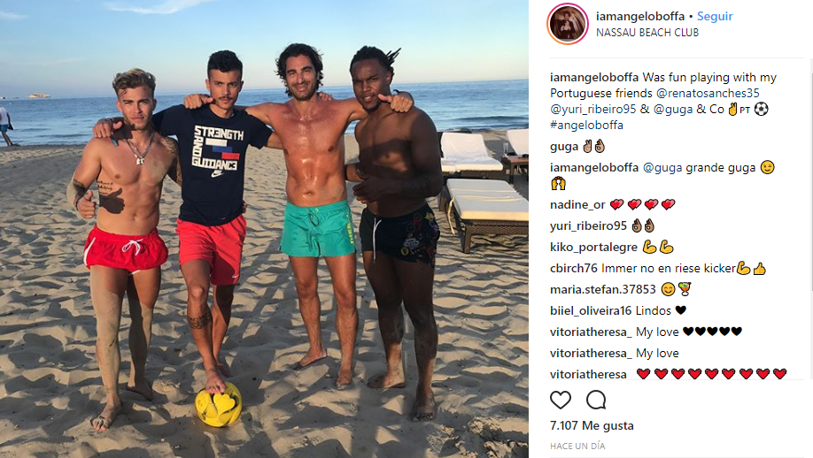 Ha estado en Platja d’en Bossa de pachanga con varios futbolistas portugueses del Benfica, Diogo Gonçalves y Guga Rodrigues, así como el del Swansea Renato Sanches, con quienes aparece en la imagen (el tercero de izquierda a derecha) que compaña este texto.