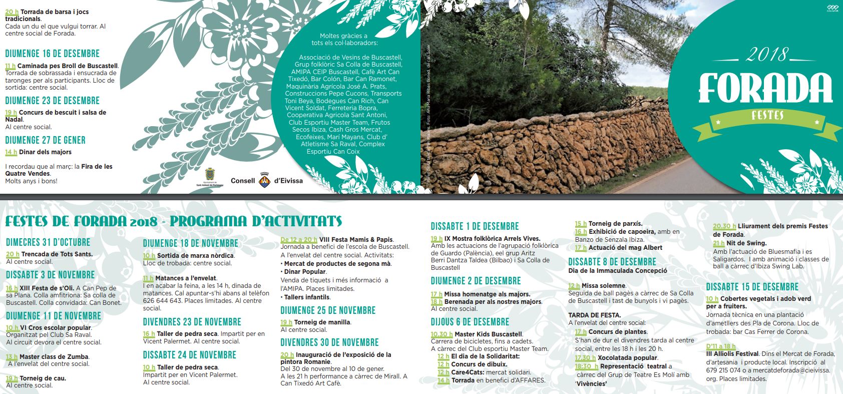 La concejala de Forada, Cristina Ribas, y el tesorero de la asociación de vecinos, Toni Costa, han presentado esta mañana las diferentes actividades acompañados por el alcalde de Sant Antoni y la concejala Neus Marí. Entre las citas clásicas de Forada, Ribas ha destacado la Mostra Folklòrica Arrels Vives, que alcanza su IX edición, y que este año cuenta como invitados a los integrantes de la agrupación folclórica Guardo, de Palencia, y el grupo Aritz Berri Bantza Taldea, de Bilbao.