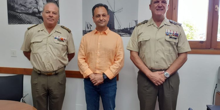 El president del Consell de Formentera, Llorenç Córdoba, ha rebut aquest matí a la seu de l’Administració insular la visita institucional del comandant general de Balears, Fernando Luís Gracia, i del coronel Jesús de Quiroga.