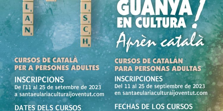 Se trata de seis formaciones, algunas de ellas presenciales y otras on line, y que cubren los niveles A1, A2, B1, B2 y C1. El periodo de inscripción finaliza el 25 de septiembre y las fechas de realización de los cursos van del 3 de octubre al 1 de febrero. La información y las inscripciones están disponibles en la web www.santaeulariaculturaijoventut.com. También se pueden consultar dudas sobre el procedimiento a través el mail secretariacultura@santaeularai.com o en el teléfono 971 33 96 69.