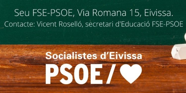 La Federació Socialista d’Eivissa (FSE-PSOE) ha organitzat unes jornades informatives per donar a conèixer les noves lleis de l’educació, estatals i autonòmica, que tindran lloc els dies 25 i 31 de maig i 1 i 9 de juny a la seu del partit (Via Romana 15, Eivissa). Les jornades, que són obertes al conjunt de la comunitat educativa de l’illa i a totes les persones interessades, comptaran amb la participació de la secretària executiva d’Educació i Universitats del PSOE i diputada al Congrés, María Luz Martínez Seijo; el director general de Formació Professional i Ensenyaments Artístics del Govern de les Illes Balears, Toni Baos; la delegada d’Educació a Eivissa, Marga Ferrer; i el diputat del PSIB-PSOE Enric Casanova. Estaran moderades pel secretari d’Educació de la FSE-PSOE, Vicent Roselló.