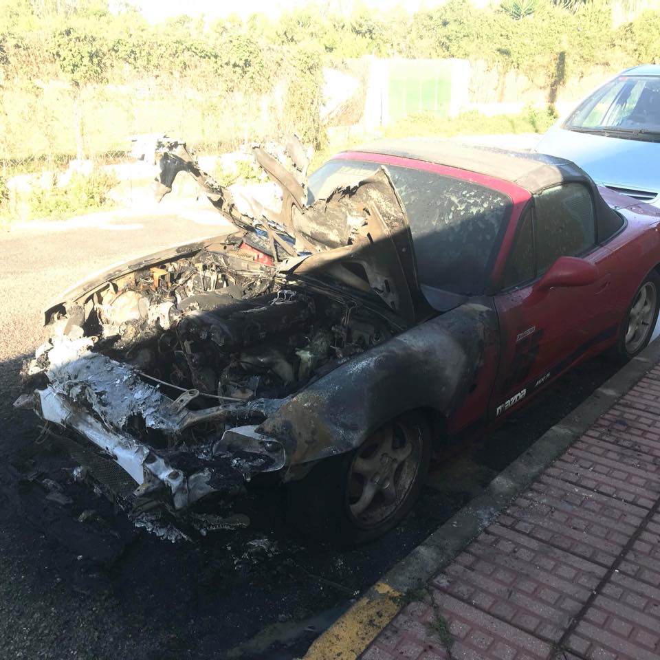 @Noudiari / Los propietarios de este Mazda MX-5 se han llevado un enorme disgusto al despertar esta mañana con su coche envuelto en llamas que rápidamente fueron sofocadas por los bomberos.