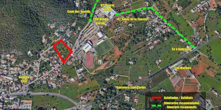 Igualmente, se recuerda que el acceso a la zona de los centros educativos y el polideportivo también puede realizarse por dos vías alternativas. Por un lado, el Camí des Novells, y por el otro usando la carretera de Sant Carles, usando el vial lateral que sale desde el cruce de la zona de Ca n’Andreuet para llegar al tramo final de la calle Rafael Sáinz de la Cuesta.