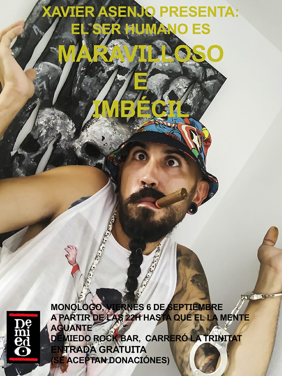 @N.C. / Xavier Asenjo se estrena como monologista con ‘El ser humano es maravilloso e imbécil’, un monólogo en el que habrá mucho humor negro y sin filtros, «los filtros son para los moralistas, a mí no me hacen falta», explica Asenjo. La cita con este humorista ibicenco es el viernes, 6 de septiembre, en el bar Demiedo a las 22 horas con entrada gratuita.