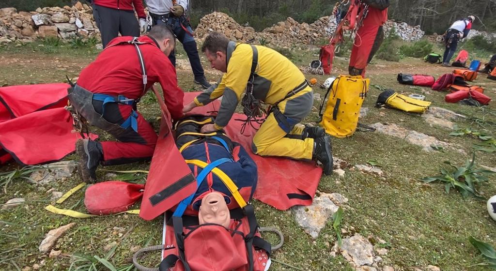 Los encargados de completar el simulacro han sido efectivos del Grup d’Espeleosocors de la Federació Balear d’Espeleologia y del grupo Penjats de Formentera, así como miembros de Proteccióm Civil de Formentera, Bomberos de Formentera y el Grupp de Rescate de Montaña de los Bomberos de Ibiza.